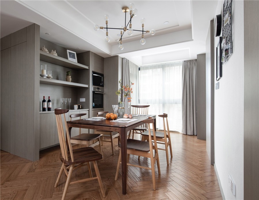 蒸箱烤箱柜外置和酒柜吧完美解決了原有廚房面積過(guò)小 無(wú)法擴(kuò)展的問(wèn)題