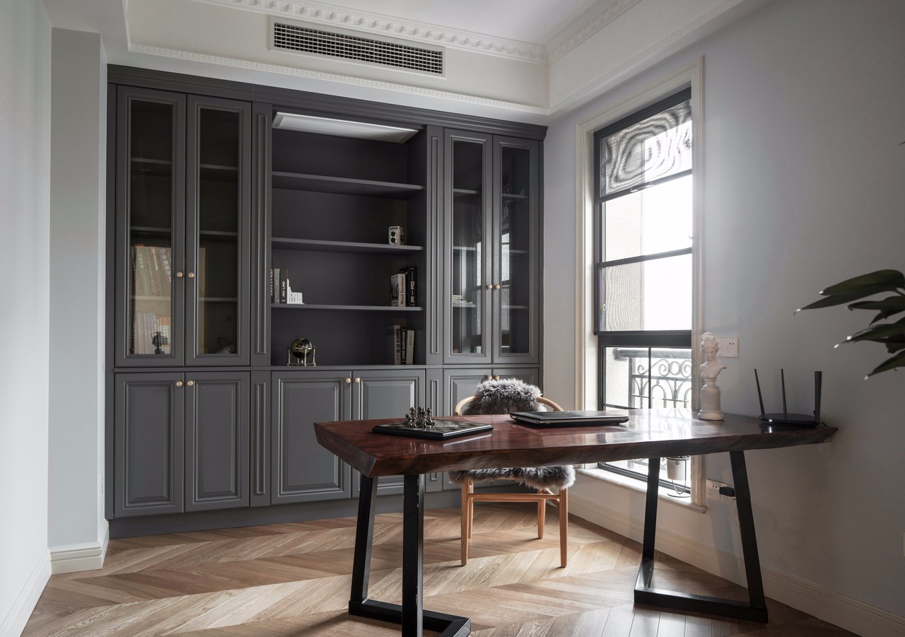 書房空間開放之后,光線充足,空間自由,全實(shí)木材質(zhì)的定制書桌書架,搭配原木色的椅子,十分有質(zhì)感。 這大概是房東的私人空間,墻面的部分做了櫥柜,方便擱置書籍和小禮物的地方。顏色調(diào)性和廚房櫥柜保持了一致。 書桌買了簡易型又文藝的桌子,甚至它可以搖身一變,變成茶室(自行想象)??拷皯舻奈恢?,也是為了采光較好,方便閱讀和思考。有時(shí)候頭腦需要休息的時(shí)候,還可以向著窗外吹吹風(fēng),發(fā)發(fā)呆。