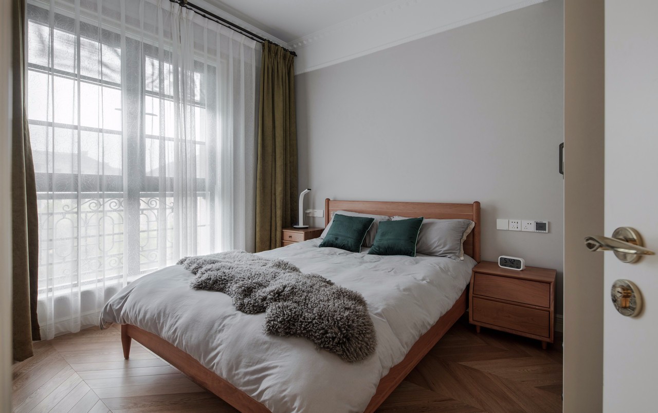 房主比較偏愛灰色調(diào),從床品的選擇可以看出來,灰色代表低調(diào),格子代表嚴(yán)謹(jǐn),而藍(lán)色靠枕一點(diǎn)綴,內(nèi)心的熱情與奔放又不言而喻。大體可以看出男主人是一個(gè)悶騷的文藝暖男。