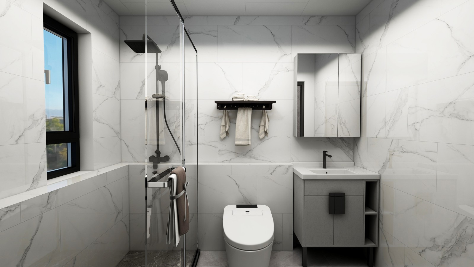 衛(wèi)生間采用二分式隔斷,透明的玻璃隔斷,即使是衛(wèi)生間也不會顯得十分狹窄。