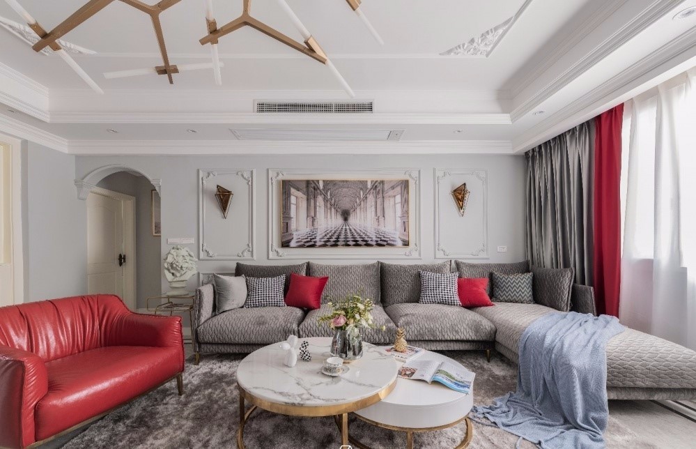整個空間大面積使用灰色調(diào),而大膽的紅色加入無疑是為了渲染活躍的氣氛。